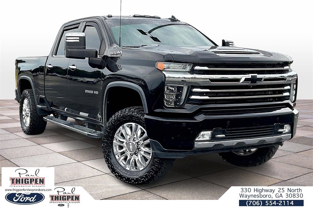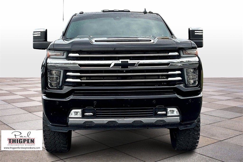 Certified. Black 2020 Chevrolet Silverado 2500HD High Country 4WD 10-Speed Automatic Duramax 6.6L V8 Turbodiesel Ford Blue Certification Certified, 10-Speed Automatic, 4WD, Jet Black Leather, 10-Way Power Driver Seat Adjuster w/Lumbar, 10-Way Power Passenger Seat Adjuster w/Lumbar, 12-Volt Rear Auxiliary Power Outlet, 120-Volt Bed Mounted Power Outlet, 120-Volt Instrument Panel Power Outlet, 15" Diagonal Multicolor Head-Up Display, 170 Amp Alternator, 220 Amp Alternator, 4-Wheel Disc Brakes, 4G LTE Wi-Fi Hotspot Capable, 6" Rectangular Chromed Tubular Assist Steps, 720 Cold-Cranking Amps Heavy-Duty Battery, 8 Speakers, 8" Diagonal Multicolor Digital Display DIC, ABS brakes, Advanced Trailering System, Air Conditioning, Alloy wheels, AM/FM radio: SiriusXM with 360L, Apple CarPlay/Android Auto, Auto-dimming door mirrors, Auto-Dimming Inside Rear-View Mirror, Auto-dimming Rear-View mirror, Automatic Emergency Braking, Automatic temperature control, Bed View Camera, Black Chevytec Spray-On Bedliner w/Chevrolet Logo, Bluetooth® For Phone, BOSE Premium 7-Speaker Sound System, Brake assist, Bumpers: body-color, Chevrolet Connected Access Capable, Chrome Front Grille, Chrome Mirror Caps, Chrome Recovery Hooks, Color-Keyed Carpeting Floor Covering, Compass, Deep-Tinted Glass, Delay-off headlights, Driver door bin, Driver Memory, Driver vanity mirror, Dual Charge-Only USB Ports (2nd Row), Dual front impact airbags, Dual front side impact airbags, Electric Rear-Window Defogger, Electrical Lock Control Steering Column, Electronic Cruise Control w/Set & Resume Speed, Electronic Stability Control, Engine Block Heater, Exhaust Brake, Floor-Mounted Center Console, Following Distance Indicator, Forward Collision Alert, Front anti-roll bar, Front Black Bowtie Emblem (LPO), Front Bucket Seats, Front Bucket Seats w/Center Console, Front Carpeted Floor Mats, Front Center Armrest, Front dual zone A/C, Front fog lights, Front LED Fog Lamps, Front License Plate Kit, Front reading lights, Front wheel independent suspension, Fully automatic headlights, Garage door transmitter, Gooseneck/5th Wheel Package, Gooseneck/5th Wheel Prep Package, HD Radio, HD Rear Vision Camera, HD Surround Vision w/2 Trailer View Cam Provisions, Heated & Auto-Dim Pwr Vertical Trailering Mirrors, Heated 2nd Row Outboard Seats, Heated door mirrors, Heated Driver & Front Outboard Passenger Seating, Heated front seats, Heated rear seats, Heated Steering Wheel, Heated steering wheel, High Country Deluxe, High Idle Switch, Hill Descent Control, Hitch Guidance w/Hitch View, Illuminated entry, Integrated Trailer Brake Controller, IntelliBeam Automatic High Beam On/Off, Keyless Open & Start, Lane Change Alert w/Side Blind Zone Alert, Lane Departure Warning System, Leather-Wrapped Steering Wheel, LED Cargo Area Lighting, LED Smoked Amber Roof Marker Lamps, Low tire pressure warning, Manual Tilt & Telescoping Steering Column, Memory seat, Navigation System, Occupant sensing airbag, OnStar & Chevrolet Connected Services Capable, Outside temperature display, Overhead airbag, Overhead console, Panic alarm, Passenger door bin, Passenger vanity mirror, Perforated Leather-Appointed Seat Trim, Polished Exhaust Tip, Power Door Locks, Power door mirrors, Power driver seat, Power Front Windows w/Driver Express Up/Down, Power Front Windows w/Passenger Express Up/Down, Power passenger seat, Power Rear Windows w/Express Down, Power Sliding Rear Window w/Defogger, Power steering, Power Sunroof, Power windows, Preferred Equipment Group 3LZ, Premium audio system: Chevrolet Infotainment 3 Premium, Radio: Chevrolet Infotainment 3 Premium System, Rear Camera Mirror, Rear Carpeted Floor Mats, Rear Cross Traffic Alert, Rear reading lights, Rear seat center armrest, Rear step bumper, Rear Wheelhouse Liners, Rear window defroster, Remote keyless entry, Remote Vehicle Starter System, Safety Alert Seat, Safety Package II, Security system, SiriusXM w/360L, Speed control, Speed-sensing steerin