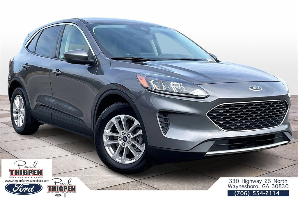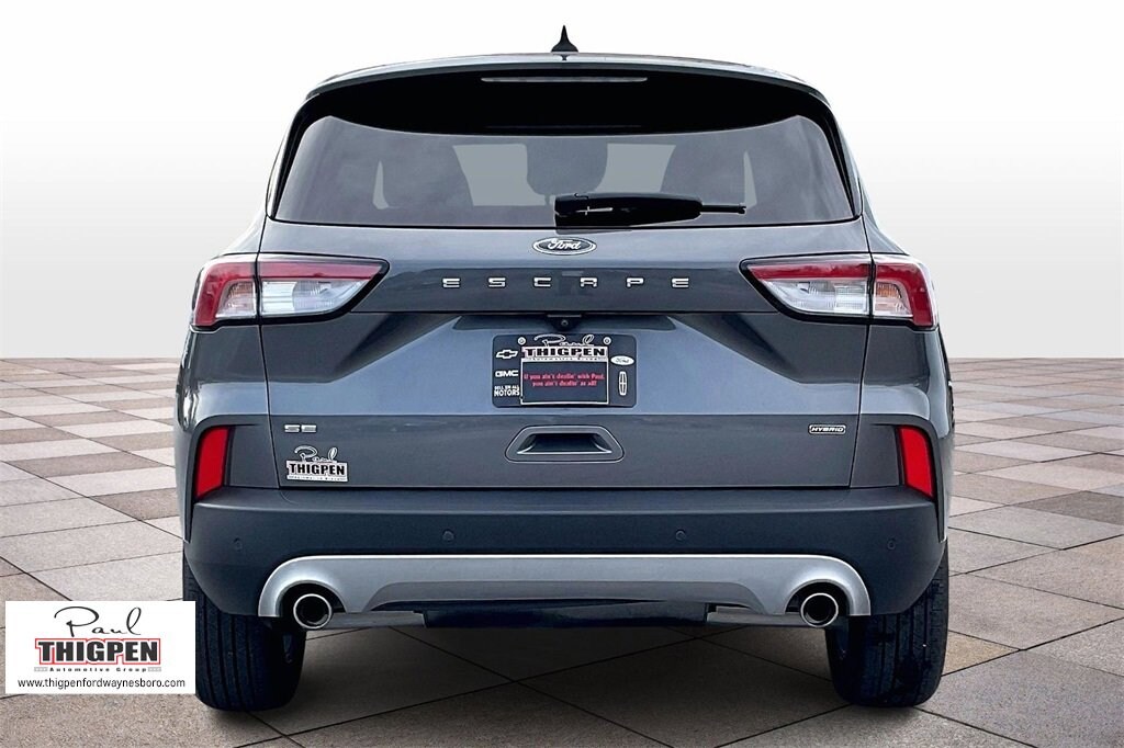 Certified. Gray Metallic 2021 Ford Escape Hybrid SE FWD eCVT 2.5L iVCT Ford Blue Certification Certified, 2.5L iVCT, 10-Way Power Driver's Seat, 2.91 Axle Ratio, 4-Wheel Disc Brakes, 6 Speakers, ABS brakes, Air Conditioning, Alloy wheels, AM/FM radio: SiriusXM, AM/FM Stereo, Auto High-beam Headlights, Automatic temperature control, Brake assist, Bumpers: body-color, Compass, Delay-off headlights, Driver door bin, Driver vanity mirror, Dual front impact airbags, Dual front side impact airbags, Dual-Zone Electronic Automatic Temperature Control, Easy Access Cargo Shade, Electronic Fuel Door Release, Electronic Stability Control, Emergency communication system: SYNC 3 911 Assist, Equipment Group 201A, Exterior Parking Camera Rear, FordPass Connect, Four wheel independent suspension, Front anti-roll bar, Front Bucket Seats, Front Center Armrest, Front dual zone A/C, Front reading lights, Fully automatic headlights, Illuminated entry, Instrument Panel w/6.5" Digital Screen, Knee airbag, Low tire pressure warning, Neutral Towing Capability, Occupant sensing airbag, Outside temperature display, Overhead airbag, Overhead console, Panic alarm, Passenger door bin, Passenger vanity mirror, Pedestrian Alert Sounder, Power door mirrors, Power steering, Power windows, Radio data system, Rear anti-roll bar, Rear reading lights, Rear window defroster, Rear window wiper, Remote keyless entry, Speed control, Speed-sensing steering, Speed-Sensitive Wipers, Split folding rear seat, Spoiler, Steering wheel mounted audio controls, SYNC 3 Communications & Entertainment System, Telescoping steering wheel, Tilt steering wheel, Traction control, Trip computer, Unique Cloth Front Bucket Seats, Variably intermittent wipers, Wheels: 17" Shadow Silver-Painted Aluminum, 2.5L iVCT.
