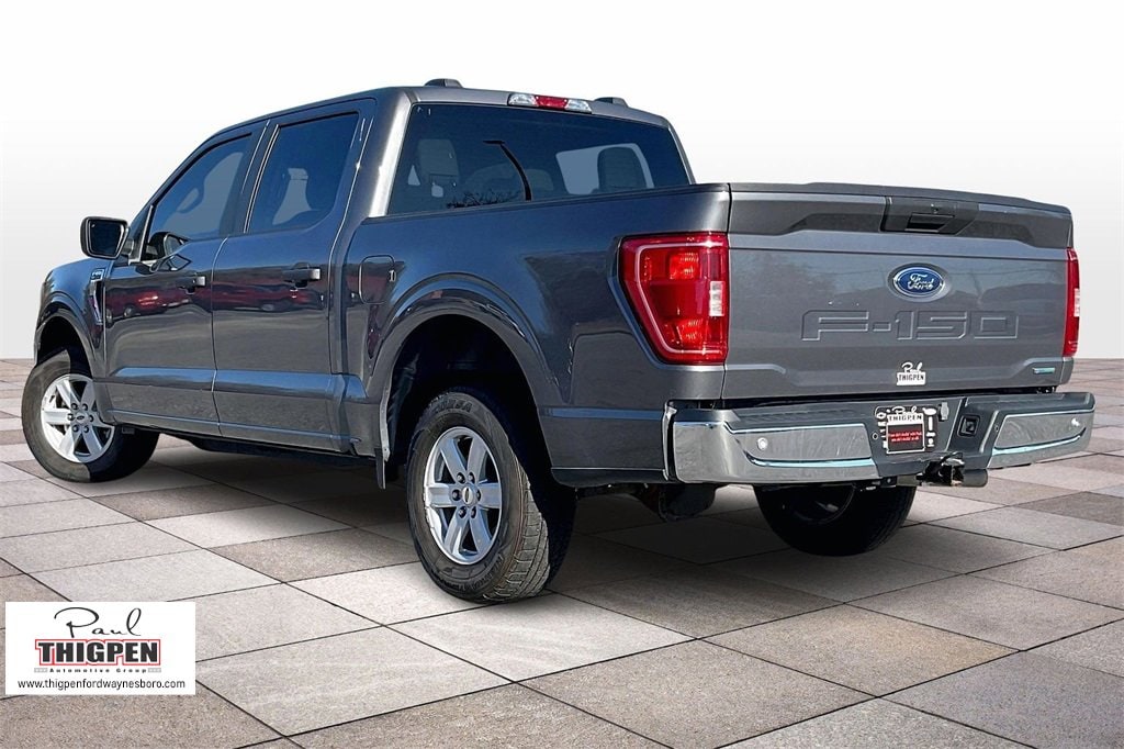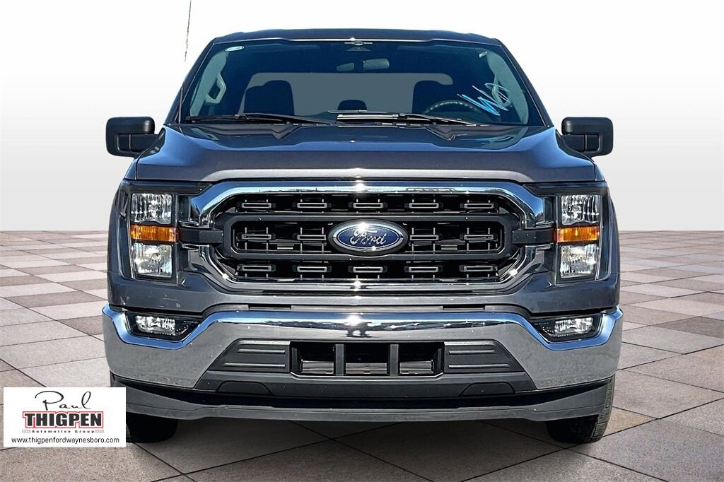 Certified. Gray Metallic 2023 Ford F-150 XLT RWD 10-Speed Automatic 3.5L V6 EcoBoost Ford Blue Certification Certified, 4-Wheel Disc Brakes, 6 Speakers, 8-Way Power Driver's Seat w/Power Lumbar, ABS brakes, Air Conditioning, Alloy wheels, AM/FM radio, Auto High-beam Headlights, Brake assist, Bumpers: chrome, Cloth 40/20/40 Front Seat, Compass, Delay-off headlights, Driver door bin, Driver vanity mirror, Dual front impact airbags, Dual front side impact airbags, Electronic Stability Control, Emergency communication system: SYNC 4 911 Assist, Exterior Parking Camera Rear, Front anti-roll bar, Front Center Armrest w/Storage, Front fog lights, Front License Plate Bracket, Front reading lights, Front wheel independent suspension, Fully automatic headlights, Heated door mirrors, Illuminated entry, Low tire pressure warning, Occupant sensing airbag, Outside temperature display, Overhead airbag, Overhead console, Panic alarm, Passenger door bin, Passenger vanity mirror, Power door mirrors, Power steering, Power windows, Radio data system, Radio: AM/FM Stereo w/6 Speakers, Rear reading lights, Rear step bumper, Rear window defroster, Remote keyless entry, Security system, Speed control, Speed-sensing steering, Split folding rear seat, Steering wheel mounted audio controls, SYNC 4, Tachometer, Telescoping steering wheel, Tilt steering wheel, Traction control, Trip computer, Variably intermittent wipers, Voltmeter, Wheels: 17" Silver Painted Aluminum.