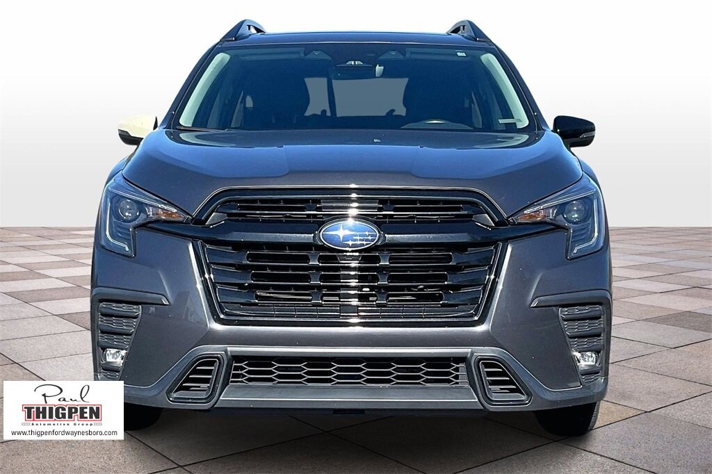 Certified. Magnetite Gray Metallic 2023 Subaru Ascent Onyx Edition AWD Lineartronic CVT 2.4L 4-Cylinder DOHC 16V Ford Blue Certification Certified, 3rd row seats: bench, 4-Wheel Disc Brakes, 6 Speakers, ABS brakes, Air Conditioning, All-Weather Floor Liners, Alloy wheels, AM/FM radio: SiriusXM, Auto High-beam Headlights, Auto-dimming Rear-View mirror, Automatic temperature control, Axle Ratio: 4.44, Brake assist, Bumpers: body-color, Delay-off headlights, Driver door bin, Driver vanity mirror, Dual front impact airbags, Dual front side impact airbags, Electronic Stability Control, Emergency communication system: STARLINK Safety and Security (Subscription Required), Exterior Parking Camera Rear, Four wheel independent suspension, Front anti-roll bar, Front Bucket Seats, Front Center Armrest, Front dual zone A/C, Front fog lights, Front reading lights, Fully automatic headlights, Garage door transmitter: HomeLink, Heated door mirrors, Heated Front Bucket Seats, Heated front seats, Heated steering wheel, Illuminated entry, Knee airbag, Leather Shift Knob, Leather steering wheel, Low tire pressure warning, Occupant sensing airbag, Outside temperature display, Overhead airbag, Overhead console, Panic alarm, Passenger door bin, Passenger vanity mirror, Power door mirrors, Power driver seat, Power Liftgate, Power moonroof, Power steering, Power windows, Radio data system, Radio: Subaru STARLINK 11.6" Multimedia Plus System, Rear air conditioning, Rear anti-roll bar, Rear reading lights, Rear window defroster, Rear window wiper, Reclining 3rd row seat, Remote keyless entry, Security system, Speed control, Speed-sensing steering, Split folding rear seat, Spoiler, Standard Model, STARLINK/Apple CarPlay/Android Auto, StarTex Upholstery, Steering wheel mounted audio controls, Tachometer, Telescoping steering wheel, Tilt steering wheel, Traction control, Trip computer, Turn signal indicator mirrors, Variably intermittent wipers, Wheels: 20" x 7.5 J Aluminum Alloy w/Black Finish, Wireless Charger.