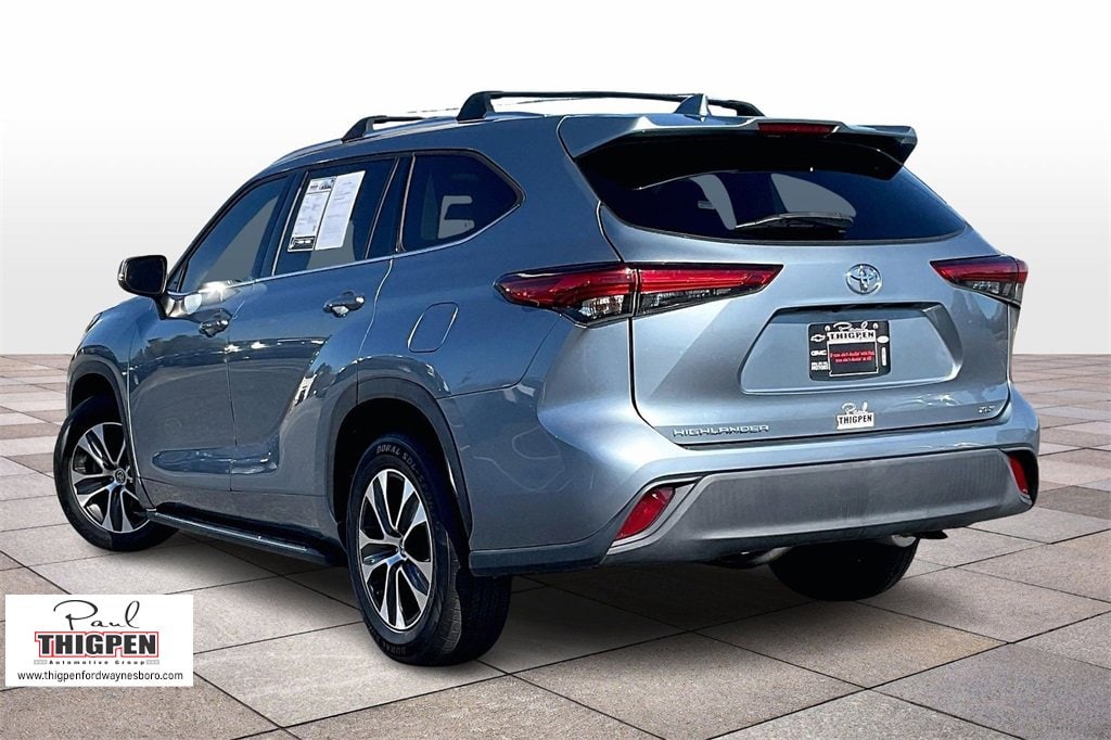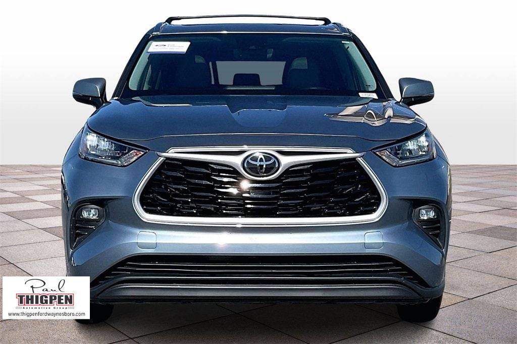 Certified. Blue 2020 Toyota Highlander XLE FWD 8-Speed Automatic 3.5L V6 DOHC Ford Blue Certification Certified, 18" Machined Alloy Wheels, 3.003 Axle Ratio, 3rd row seats: split-bench, 4-Wheel Disc Brakes, 6 Speakers, ABS brakes, Air Conditioning, Alloy wheels, AM/FM radio: SiriusXM, Apple CarPlay/Android Auto, Auto High-beam Headlights, Auto-dimming Rear-View mirror, Automatic temperature control, Brake assist, Bumpers: body-color, Delay-off headlights, Driver door bin, Driver vanity mirror, Dual front impact airbags, Dual front side impact airbags, Electronic Stability Control, Emergency communication system: Safety Connect with 3-year trial, Exterior Parking Camera Rear, Four wheel independent suspension, Front anti-roll bar, Front Bucket Seats, Front Center Armrest, Front dual zone A/C, Front fog lights, Front reading lights, Fully automatic headlights, Garage door transmitter: HomeLink, Heated door mirrors, Heated Front Bucket Seats, Heated front seats, Illuminated entry, Knee airbag, Leather Shift Knob, Low tire pressure warning, Occupant sensing airbag, Outside temperature display, Overhead airbag, Overhead console, Panic alarm, Passenger door bin, Passenger vanity mirror, Power door mirrors, Power driver seat, Power Liftgate, Power moonroof, Power passenger seat, Power steering, Power windows, Radio: Audio Plus (T1 Hi), Rear air conditioning, Rear anti-roll bar, Rear reading lights, Rear window defroster, Rear window wiper, Reclining 3rd row seat, Remote keyless entry, Roof rack: rails only, Security system, SofTex Seat Trim, Speed control, Speed-sensing steering, Split folding rear seat, Spoiler, Steering wheel mounted audio controls, Tachometer, Telescoping steering wheel, Tilt steering wheel, Traction control, Trip computer, Turn signal indicator mirrors, Variably intermittent wipers.