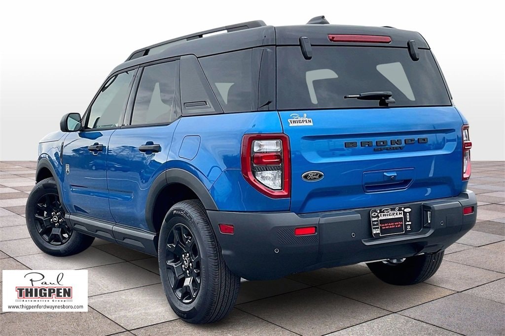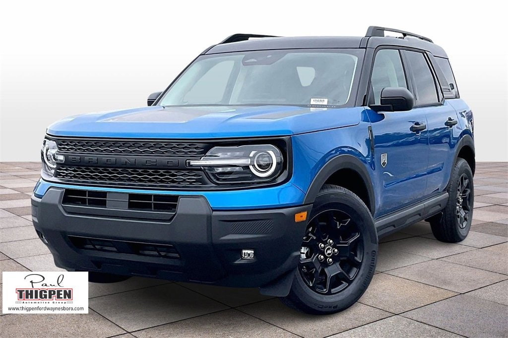 Velocity Blue Metallic 2025 Ford Bronco Sport Big Bend 4WD 8-Speed Automatic 1.5L EcoBoost 4-Wheel Disc Brakes, 6 Speakers, ABS brakes, Air Conditioning, Alloy wheels, AM/FM radio: SiriusXM, AM/FM Stereo, Auto High-beam Headlights, Automatic temperature control, Black Appearance Package, Brake assist, Carbon Black Grille w/Black BRONCO Lettering, Cargo Mat, Cloth w/Easy-to-Clean Front Bucket Seats, Compass, Convenience Package, Delay-off headlights, Driver door bin, Driver vanity mirror, Dual front impact airbags, Dual front side impact airbags, Electronic Stability Control, Emergency communication system: SYNC 4 911 Assist, Four wheel independent suspension, Front & Rear Floor Liners w/o Carpet Mats, Front anti-roll bar, Front Bucket Seats, Front Center Armrest, Front Driver/Passenger Seat Back Map Pockets, Front License Plate Bracket, Front reading lights, Fully automatic headlights, Heated 8-Way Power Driver's Seat, Heated door mirrors, Illuminated entry, Knee airbag, LED Fog Lamps, Liftgate w/Black BRONCO SPORT Lettering, Low tire pressure warning, Occupant sensing airbag, Outside temperature display, Overhead airbag, Overhead console, Painted Shadow Black Roof, Panic alarm, Passenger door bin, Passenger vanity mirror, Power door mirrors, Power steering, Power windows, Premium Trimmed Htd Fr Sport Contour Bucket Seats, Premium Wrapped Steering Wheel, Radio data system, Rear anti-roll bar, Rear Parking Sensors, Rear reading lights, Rear seat center armrest, Rear window defroster, Rear window wiper, Remote keyless entry, Security system, SiriusXM, Speed control, Speed-sensing steering, Speed-Sensitive Wipers, Split folding rear seat, Steering wheel mounted audio controls, SYNC 4 w/Enhanced Voice Recognition, Tachometer, Telescoping steering wheel, Tilt steering wheel, Traction control, Trip computer, Universal Garage Door Opener (UGDO), Variably intermittent wipers, Wheels: 17" Carbonized Gray-Painted Aluminum, Wheels: 17" Matte Black-Painted Aluminum.
