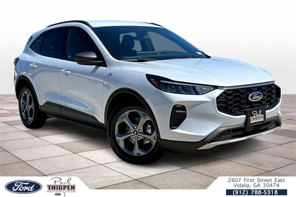 Space Silver Metallic 2025 Ford Escape ST-Line FWD eCVT 2.5L iVCT Vidalia Ford Lincoln 2607 E 1st St Vidalia, Georgia 30474 912-788-5318 Cold Weather Package (Heated Front Row Seats, Heated Sideview Mirrors, Heated Steering Wheel, and Remote Starter System), Equipment Group 301A (2.91 Axle Ratio, Electronic Fuel Door Release, Neutral Towing Capability, and Pedestrian Alert Sounder), 4D Sport Utility, 2.5L iVCT, eCVT, FWD, 4-Wheel Disc Brakes, 6 Speakers, ABS brakes, Air Conditioning, Alloy wheels, AM/FM radio: SiriusXM, AM/FM Stereo, Auto High-beam Headlights, Automatic temperature control, Black Roof-Rack Side Rails, Brake assist, Bumpers: body-color, Compass, Delay-off headlights, Driver door bin, Driver vanity mirror, Dual front impact airbags, Dual front side impact airbags, Electronic Stability Control, Emergency communication system: SYNC 4 911 Assist, FordPass Connect, Four wheel independent suspension, Front & Rear Floor Liners w/Carpet Mats, Front anti-roll bar, Front Bucket Seats, Front Center Armrest, Front dual zone A/C, Front reading lights, Fully automatic headlights, Illuminated entry, Knee airbag, Low tire pressure warning, Occupant sensing airbag, Outside temperature display, Overhead airbag, Overhead console, Panic alarm, Panoramic Vista Roof, Passenger door bin, Passenger vanity mirror, Power door mirrors, Power driver seat, Power steering, Power windows, Radio data system, Rear anti-roll bar, Rear reading lights, Rear seat center armrest, Rear window defroster, Rear window wiper, Remote keyless entry, Speed control, Speed-sensing steering, Speed-Sensitive Wipers, Split folding rear seat, Spoiler, Sport steering wheel, Steering wheel mounted audio controls, SYNC 4, Tachometer, Telescoping steering wheel, Tilt steering wheel, Traction control, Trip computer, Variably intermittent wipers, Vinyl/Cloth Front Sport Contour Bucket Seats, and Wheels: 18" Rock Metallic Painted Aluminum. Auto LED Headlights, Backup Camera, Blind Spot Monitoring, BLIS Blind Spot Info, Bluetooth w/ Streaming Audio, Panoramic Sunroof/Moonroof, Push Button Start, Remote Start, Skid Plate Package, 4D Sport Utility, 2.5L iVCT, eCVT, FWD, 2.91 Axle Ratio, Cold Weather Package, Electronic Fuel Door Release, Equipment Group 301A, Heated Front Row Seats, Heated Sideview Mirrors, Heated Steering Wheel, Neutral Towing Capability, Pedestrian Alert Sounder, Remote Starter System. Price includes: $4000 - Bonus Customer Cash. Exp. 01/05/2026 $500 - Mega Bonus Cash. Exp. 01/05/2026