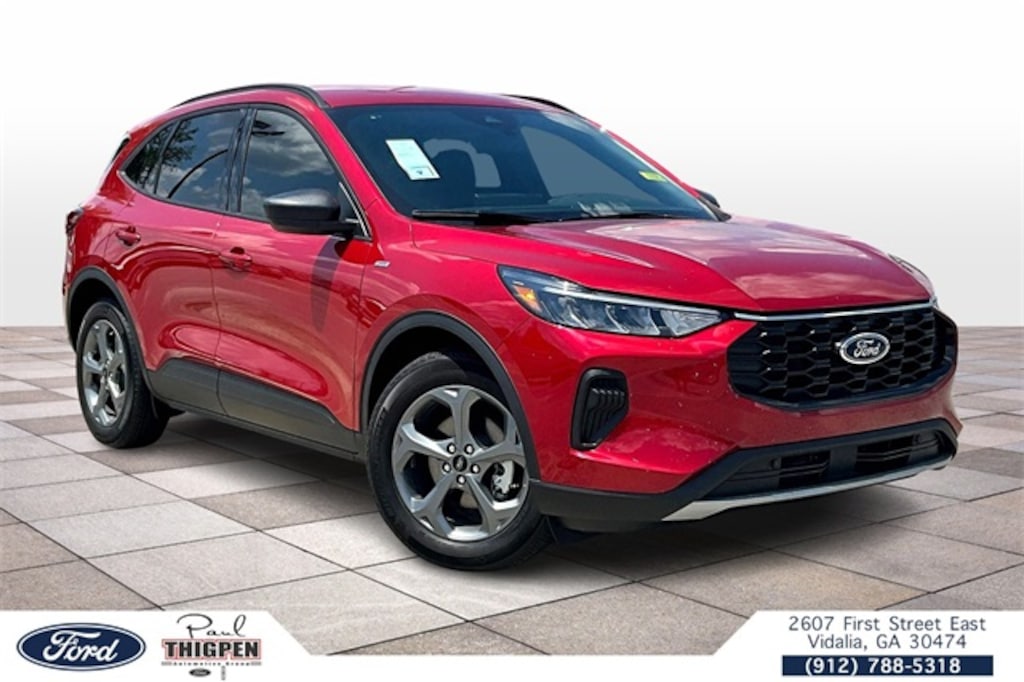 Rapid Red Metallic Tinted Clearcoat 2025 Ford Escape ST-Line FWD 8-Speed Automatic 1.5L EcoBoost Cold Weather Package (Heated Front Row Seats, Heated Sideview Mirrors, Heated Steering Wheel, and Remote Starter System), Equipment Group 300A, Tech Pack #1 (Adaptive Cruise Control w/Stop-and-Go, Connected Navigation, Ford Co-Pilot360 Assist+, Intersection Assist, Predictive Speed Assist, Rear Parking Sensor, Rear-View Camera, and SYNC 4 w/Enhanced Voice Recognition), 4D Sport Utility, 1.5L EcoBoost, 8-Speed Automatic, FWD, 3.81 Axle Ratio, 4-Wheel Disc Brakes, 6 Speakers, ABS brakes, Air Conditioning, Alloy wheels, AM/FM radio: SiriusXM, AM/FM Stereo, Auto High-beam Headlights, Automatic temperature control, Brake assist, Bumpers: body-color, Compass, Delay-off headlights, Driver door bin, Driver vanity mirror, Dual front impact airbags, Dual front side impact airbags, Easy Access Cargo Shade, Electronic Stability Control, Emergency communication system: SYNC 4 911 Assist, FordPass Connect, Four wheel independent suspension, Front & Rear Floor Liners w/Carpet Mats, Front anti-roll bar, Front Bucket Seats, Front Center Armrest, Front dual zone A/C, Front License Plate Bracket, Front reading lights, Fully automatic headlights, Illuminated entry, Knee airbag, Low tire pressure warning, Occupant sensing airbag, Outside temperature display, Overhead airbag, Overhead console, Panic alarm, Passenger door bin, Passenger vanity mirror, Power door mirrors, Power driver seat, Power Liftgate, Power steering, Power windows, Radio data system, Rear anti-roll bar, Rear reading lights, Rear seat center armrest, Rear window defroster, Rear window wiper, Remote keyless entry, Speed control, Speed-sensing steering, Speed-Sensitive Wipers, Split folding rear seat, Spoiler, Sport steering wheel, Steering wheel mounted audio controls, SYNC 4, Tachometer, Telescoping steering wheel, Tilt steering wheel, Traction control, Trip computer, Variably intermittent wipers, Vinyl/Cloth Front Sport Contour Bucket Seats, and Wheels: 18" Rock Metallic Painted Aluminum. 13.4" HD Color Touchscreen, Adaptive Cruise Control, Auto LED Headlights, Backup Camera, Blind Spot Monitoring, BLIS Blind Spot Info, Evasive Steering Assist, Parking Sensors, Push Button Start, Remote Start, Reverse Sensing, Reverse Brake Assist, Hill Start Assist, 4D Sport Utility, 1.5L EcoBoost, 8-Speed Automatic, FWD, Adaptive Cruise Control w/Stop-and-Go, Cold Weather Package, Connected Navigation, Equipment Group 300A, Ford Co-Pilot360 Assist+, Heated Front Row Seats, Heated Sideview Mirrors, Heated Steering Wheel, Intersection Assist, Predictive Speed Assist, Rear Parking Sensor, Rear-View Camera, Remote Starter System, SYNC 4 w/Enhanced Voice Recognition, Tech Pack #1. Price includes: $4000 - Bonus Customer Cash. Exp. 01/05/2026