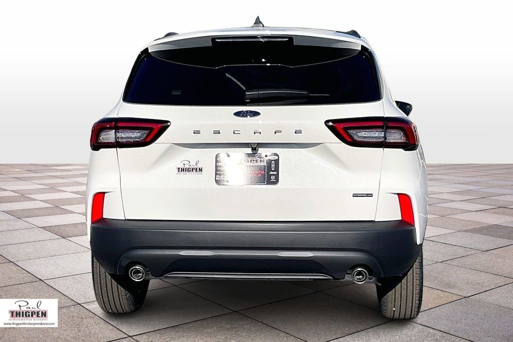 Star White Metallic Tri-Coat 2026 Ford Escape Hybrid ST-Line Select AWD eCVT 2.5L iVCT 2.5L iVCT, 10-Way Power Driver's Seat w/Memory, 2.91 Axle Ratio, 4-Way Manual Front Passenger Seat, 4-Wheel Disc Brakes, 6 Speakers, 8-Way Power Driver Seat, ABS brakes, Air Conditioning, Alloy wheels, AM/FM radio: SiriusXM 360L, Auto High-beam Headlights, Automatic temperature control, Brake assist, Bumpers: body-color, Compass, Delay-off headlights, Driver door bin, Driver vanity mirror, Dual front impact airbags, Dual front side impact airbags, Electronic Fuel Door Release, Electronic Stability Control, Emergency communication system: SYNC 4 911 Assist, Equipment Group 400A, Ford App, Four wheel independent suspension, Front and Rear Floor Liners with Carpet Mats, Front anti-roll bar, Front Bucket Seats, Front Center Armrest, Front dual zone A/C, Front fog lights, Front License Plate Bracket, Front reading lights, Fully automatic headlights, Heated door mirrors, Heated front seats, Heated steering wheel, Illuminated entry, Knee airbag, Low tire pressure warning, Memory seat, Neutral Towing Capability, Occupant sensing airbag, Outside temperature display, Overhead airbag, Overhead console, Panic alarm, Partial Vinyl/Cloth Heated Front Sport Contour Bucket Seats with Red Stitching, Passenger door bin, Passenger vanity mirror, Pedestrian Alert Sounder, Power door mirrors, Power driver seat, Power Liftgate, Power steering, Power windows, Radio data system, Radio: AM/FM Stereo with SiriusXM 360L, Rear anti-roll bar, Rear reading lights, Rear seat center armrest, Rear window defroster, Rear window wiper, Remote keyless entry, Speed control, Speed-sensing steering, Speed-Sensitive Wipers, Split folding rear seat, Spoiler, Sport steering wheel, Steering wheel mounted audio controls, SYNC 4, Tachometer, Telescoping steering wheel, Tilt steering wheel, Traction control, Trip computer, Variably intermittent wipers, Wheels: 18" Rock Metallic Painted Aluminum, 2.5L iVCT.