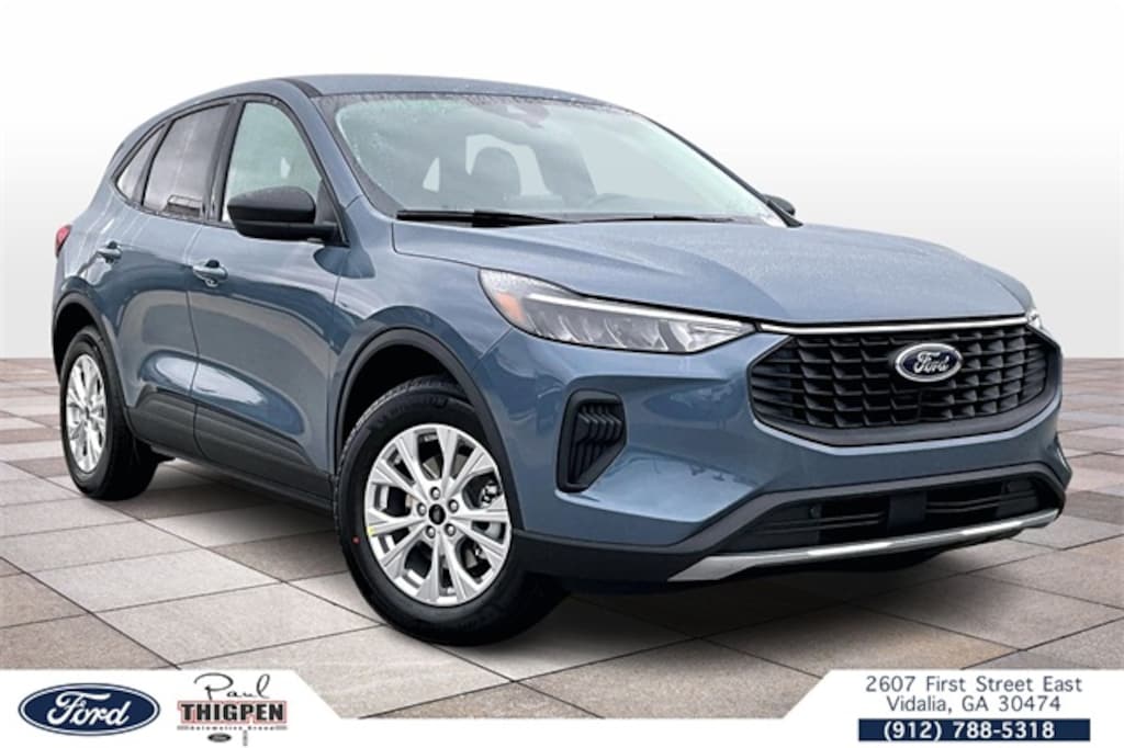 Vapor Blue Metallic 2026 Ford Escape Active FWD 8-Speed Automatic 1.5L EcoBoost Vidalia Ford Lincoln 2607 E 1st St Vidalia, Georgia 30474 912-788-5318 Equipment Group 200A (3.81 Axle Ratio, 4-Way Manual Front Passenger Seat, 6-Way Manual Driver Seat, Ford App, Radio: AM/FM Stereo with SiriusXM 360L, SYNC 4, Unique Cloth Front Bucket Seats, and Wheels: 17" Shadow Silver-Painted Aluminum), 4D Sport Utility, 1.5L EcoBoost, 8-Speed Automatic, FWD, 4-Wheel Disc Brakes, 6 Speakers, ABS brakes, Air Conditioning, Alloy wheels, AM/FM radio: SiriusXM 360L, Auto High-beam Headlights, Automatic temperature control, Brake assist, Bumpers: body-color, Compass, Delay-off headlights, Driver door bin, Driver vanity mirror, Dual front impact airbags, Dual front side impact airbags, Electronic Stability Control, Emergency communication system: SYNC 4 911 Assist, Four wheel independent suspension, Front anti-roll bar, Front Bucket Seats, Front Center Armrest, Front dual zone A/C, Front reading lights, Fully automatic headlights, Illuminated entry, Knee airbag, Low tire pressure warning, Occupant sensing airbag, Outside temperature display, Overhead airbag, Overhead console, Panic alarm, Passenger door bin, Passenger vanity mirror, Power door mirrors, Power steering, Power windows, Radio data system, Rear anti-roll bar, Rear reading lights, Rear seat center armrest, Rear window defroster, Rear window wiper, Remote keyless entry, Speed control, Speed-sensing steering, Speed-Sensitive Wipers, Split folding rear seat, Spoiler, Steering wheel mounted audio controls, Tachometer, Telescoping steering wheel, Tilt steering wheel, Traction control, and Trip computer. 4G WiFi Hotspot Telematics, Auto LED Headlights, Backup Camera, Blind Spot Monitoring, BLIS Blind Spot Info, Bluetooth w/ Streaming Audio, Push Button Start, 4D Sport Utility, 1.5L EcoBoost, 8-Speed Automatic, FWD, 3.81 Axle Ratio, 4-Way Manual Front Passenger Seat, 6-Way Manual Driver Seat, Equipment Group 200A, Ford App, Radio: AM/FM Stereo with SiriusXM 360L, SYNC 4, Unique Cloth Front Bucket Seats, Wheels: 17" Shadow Silver-Painted Aluminum. Price includes: $2000 - Bonus Customer Cash. Exp. 03/31/2026 $500 - Retail Customer Cash. Exp. 03/31/2026