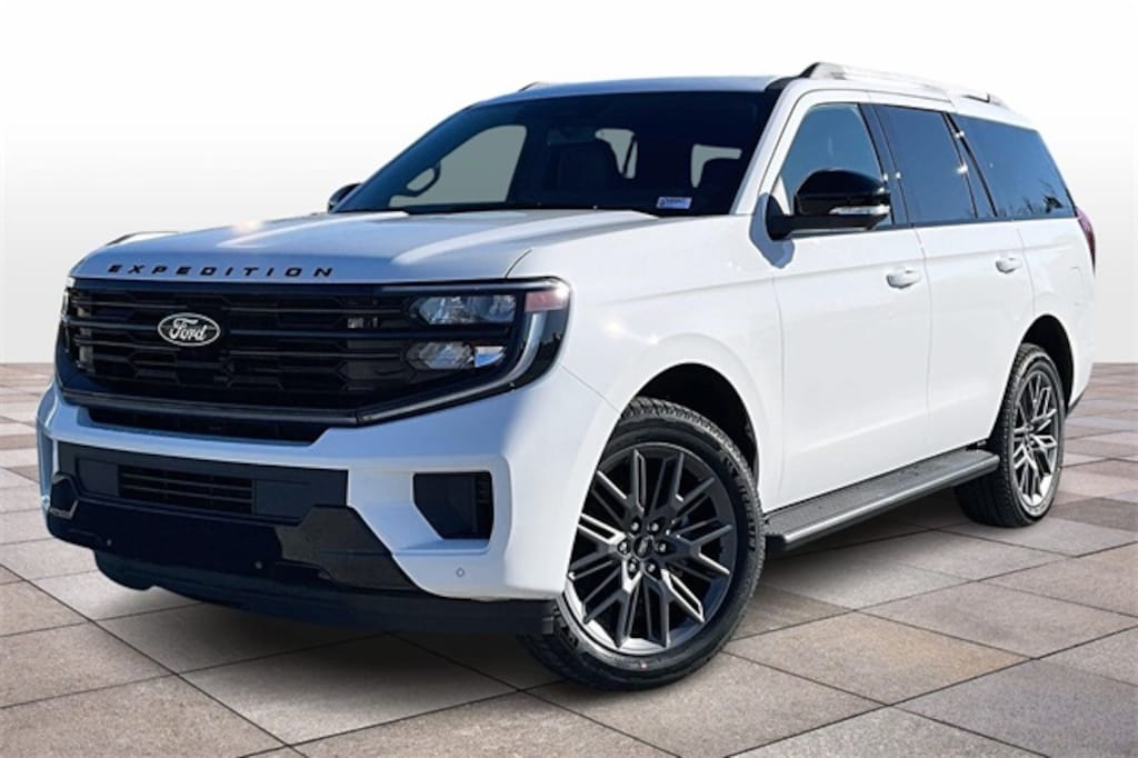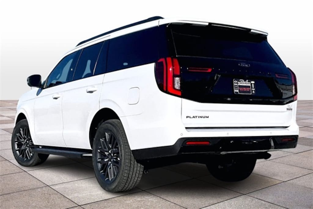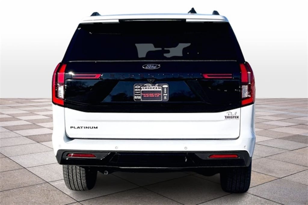 Oxford White 2026 Ford Expedition Platinum 4WD 10-Speed Automatic EcoBoost 3.5L V6 GTDi DOHC 24V Twin Turbocharged Vidalia Ford Lincoln 2607 E 1st St Vidalia, Georgia 30474 912-788-5318 Equipment Group 600A Standard Package (2nd Row Power-Folding Captain's Chairs, 3.73 Axle Ratio, BlueCruise Equipped (90-Day Trial), Ford Digital Experience, Heated and Ventilated Leather Front Captain's Chairs, Power Tilt/Telescopic Steering Wheel with Memory, Radio: B&O Sound System by Bang and Olufsen, SiriusXM with 360L, and Wheels: 20" x 8.5" Ebony Bright Machined Aluminum), Ford Connectivity Package (1-Year Included), Stealth Appearance Package (Black Belt Molding, Black Expedition Lettering on Hood, Black Headlamp Bezel with Ebony Trim Applique, Black Platinum Badge on Tailgate, Black Roof Rails, Carbon Black Front Bumper/Fascia, Rear Side Windows Laminated Glass, and Signature Grille Lighting), 4WD, 10 Speakers, 3rd row seats: split-bench, 4-Wheel Disc Brakes, ABS brakes, Air Conditioning, Alloy wheels, AM/FM radio: SiriusXM with 360L, Apple CarPlay/Android Auto, Auto High-beam Headlights, Auto-dimming door mirrors, Auto-dimming Rear-View mirror, Automatic temperature control, Brake assist, Bumpers: body-color, Compass, Delay-off headlights, Driver door bin, Driver vanity mirror, Dual front impact airbags, Dual front side impact airbags, Electronic Stability Control, Emergency communication system: 911 Assist, Exterior Parking Camera Rear, Four wheel independent suspension, Front anti-roll bar, Front Bucket Seats, Front Center Armrest, Front dual zone A/C, Front License Plate Bracket, Front reading lights, Fully automatic headlights, Garage door transmitter, Genuine wood dashboard insert, Genuine wood door panel insert, Heated door mirrors, Heated front seats, Heated rear seats, Heated steering wheel, Illuminated entry, Intersection Assist, Leather steering wheel, Low tire pressure warning, Memory seat, Navigation System, Occupant sensing airbag, Outside temperature display, Overhead airbag, Overhead console, Panic alarm, Passenger door bin, Passenger vanity mirror, Power door mirrors, Power driver seat, Power moonroof: Vista Roof, Power passenger seat, Power steering, Power windows, Radio data system, Rain sensing wipers, Rear air conditioning, Rear anti-roll bar, Rear reading lights, Rear window defroster, Rear window wiper, Reclining 3rd row seat, Remote keyless entry, Security system, Speed control, Speed-sensing steering, Speed-Sensitive Wipers, Split folding rear seat, Spoiler, Steering wheel memory, Steering wheel mounted audio controls, Tachometer, Telescoping steering wheel, Tilt steering wheel, Traction control, Trip computer, Turn signal indicator mirrors, Variably intermittent wipers, Ventilated front seats, and Voltmeter. 4WD.