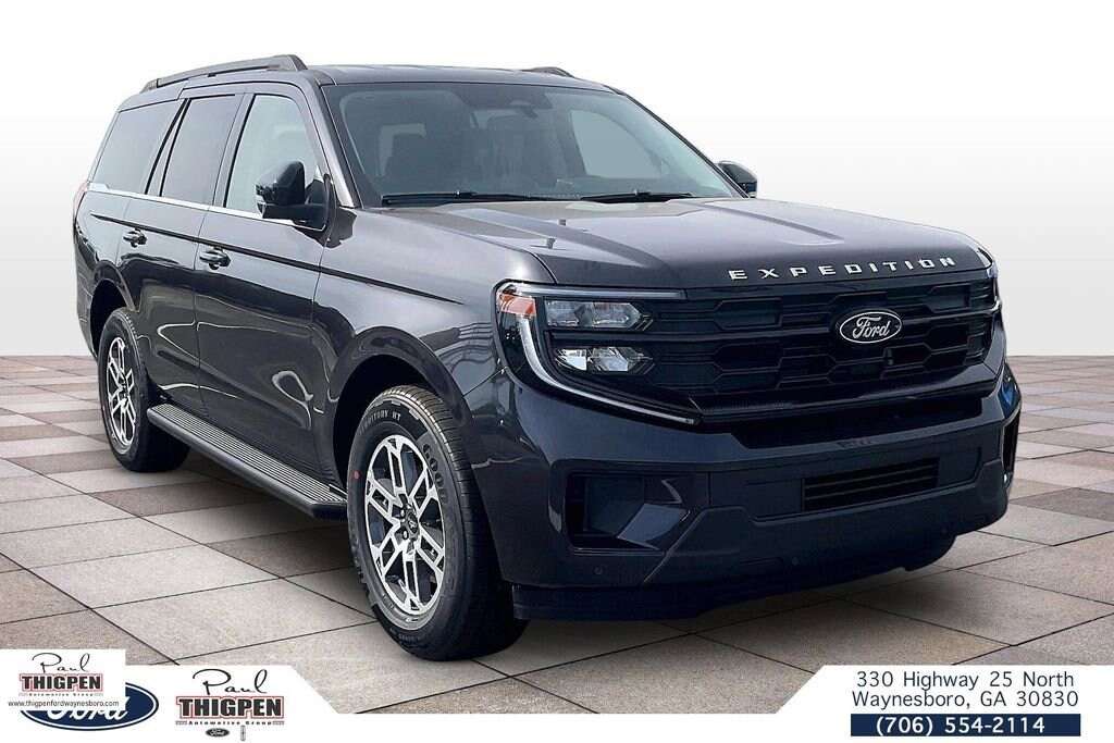Dark Matter Gray Metallic 2026 Ford Expedition Active RWD 10-Speed Automatic EcoBoost 3.5L V6 GTDi DOHC 24V Twin Turbocharged 2nd Row Power-Folding Captain's Chairs, 3.31 Axle Ratio, 360-Degree Zone Lighting, 3rd Row Flexible Seating (40/20/40), 3rd row seats: split-bench, 3rd Row Vinyl Seats, 4-Door Intelligent Access (Lock/Unlock), 4-Way Manual Head Restraints, 4-Wheel Disc Brakes, 6 Speakers, ABS brakes, Active Air Dam, ActiveX-Trimmed Front Heated Captain's Chairs, Air Conditioning, Alloy wheels, AM/FM radio: SiriusXM with 360L, Apple CarPlay/Android Auto, Auto High-beam Headlights, Auto-dimming Rear-View mirror, Automatic temperature control, BlueCruise (equipment + 1-Year + 90-Day Plan), Brake assist, Bumpers: body-color, Cloth Front Captain's Chairs, Compass, Delay-off headlights, Driver door bin, Driver vanity mirror, Dual front impact airbags, Dual front side impact airbags, Dual Power-Folding Sideview Mirrors with Autofold, Electronic Stability Control, Emergency communication system: 911 Assist, Equipment Group 202A Touring Package, Exterior Parking Camera Rear, Flex Powered Console, Ford Connectivity Package (1-Year Included), Ford Digital Experience, Ford Split Gate, Four wheel independent suspension, Front and 2nd Rows Floor Liners Without Carper Mats, Front anti-roll bar, Front Bucket Seats, Front Center Armrest, Front dual zone A/C, Front License Plate Bracket, Front reading lights, Front Side Laminated Glass, Fully automatic headlights, Heated door mirrors, Heated Steering Wheel, Illuminated entry, Intersection Assist, Low tire pressure warning, Memory Driver Seat, Navigation System, Occupant sensing airbag, Outside temperature display, Overhead airbag, Overhead console, Panic alarm, Passenger door bin, Passenger vanity mirror, Power door mirrors, Power driver seat, Power passenger seat, Power steering, Power Tilt/Telescopic Steering Wheel with Memory, Power windows, Pro Power Onboard - 400W, Radio data system, Radio: AM/FM Stereo with MP3 Capable, Rain Sensitive Windshield Wipers, Rear air conditioning, Rear anti-roll bar, Rear reading lights, Rear window defroster, Rear window wiper, Reclining 3rd row seat, Remote keyless entry, Security system, SiriusXM with 360L, Speed control, Speed-sensing steering, Speed-Sensitive Wipers, Split folding rear seat, Spoiler, Steering wheel mounted audio controls, Tachometer, Telescoping steering wheel, Tilt steering wheel, Traction control, Trip computer, USB Ports, Variably intermittent wipers, Voltmeter, Wheels: 18" x 8.5" Dark Alloy Painted Aluminum, Wheels: 20" x 8.5" Bright Machined Aluminum.