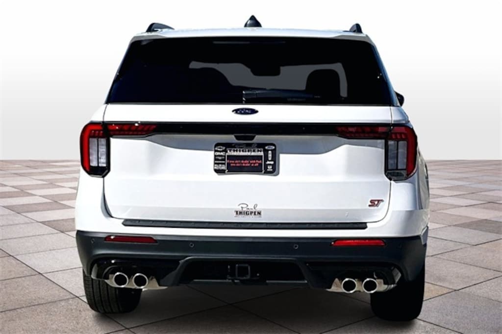Star White Metallic Tri-Coat 2026 Ford Explorer ST 4WD 10-Speed Automatic 3.0L EcoBoost V6 Vidalia Ford Lincoln 2607 E 1st St Vidalia, Georgia 30474 912-788-5318 Equipment Group 400A Standard Package (Radio: B&O Sound System by Bang and Olufsen and Wheels: 21" Magnetite-Painted Aluminum), 4D Sport Utility, 3.0L EcoBoost V6, 10-Speed Automatic, 4WD, 10 Speakers, Automatic temperature control, Front dual zone A/C, Navigation System, Rear air conditioning, 3rd row seats: bench, 4-Wheel Disc Brakes, ABS brakes, Air Conditioning, Alloy wheels, AM/FM radio: SiriusXM with 360L, Apple CarPlay/Android Auto, Auto High-beam Headlights, Auto-dimming door mirrors, Auto-dimming Rear-View mirror, Brake assist, Bumpers: body-color, Compass, Delay-off headlights, Driver door bin, Driver vanity mirror, Dual front impact airbags, Dual front side impact airbags, Electronic Stability Control, Emergency communication system: 911 Assist, Exterior Parking Camera Rear, Four wheel independent suspension, Front anti-roll bar, Front Bucket Seats, Front Center Armrest, Front fog lights, Front reading lights, Fully automatic headlights, Garage door transmitter, Heated door mirrors, Heated front seats, Heated rear seats, Heated steering wheel, Illuminated entry, Knee airbag, Leather steering wheel, Low tire pressure warning, Memory seat, Occupant sensing airbag, Outside temperature display, Overhead airbag, Overhead console, Panic alarm, Passenger door bin, Passenger vanity mirror, Power door mirrors, Power driver seat, Power Liftgate, Power passenger seat, Power steering, Power windows, Rain sensing wipers, Rear anti-roll bar, Rear reading lights, Rear window defroster, Rear window wiper, Remote keyless entry, Security system, Speed control, Speed-sensing steering, Speed-Sensitive Wipers, Split folding rear seat, Spoiler, Sport steering wheel, Steering wheel mounted audio controls, Tachometer, Telescoping steering wheel, Tilt steering wheel, Traction control, Trip computer, Turn signal indicator mirrors, and Ventilated front seats. 12.3" HD Color Driver Cluster, 13.2" Color Touchscreen, 3rd Row Seating, 5G WiFi Hotspot Telematics, Android Auto, Apple Carplay, Auto LED Headlights, Backup Camera, Bluetooth w/ Streaming Audio, LED Fog Lights, Parking Sensors, Power Mirror Package, Power Package, Push Button Start, Remote Start, Side Wind Stabilization, Sport Package, 4D Sport Utility, 3.0L EcoBoost V6, 10-Speed Automatic, 4WD, 10 Speakers, Automatic temperature control, Equipment Group 400A Standard Package, Front dual zone A/C, Navigation System, Radio: B&O Sound System by Bang and Olufsen, Rear air conditioning, Wheels: 21" Magnetite-Painted Aluminum. Price includes: $3500 - Retail Customer Cash. Exp. 03/31/2026