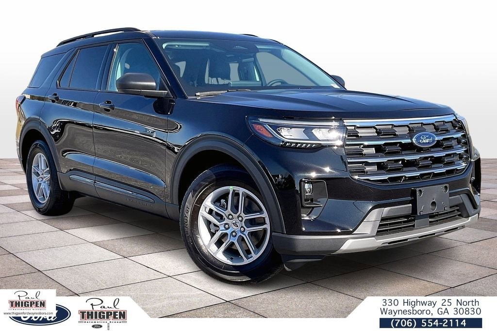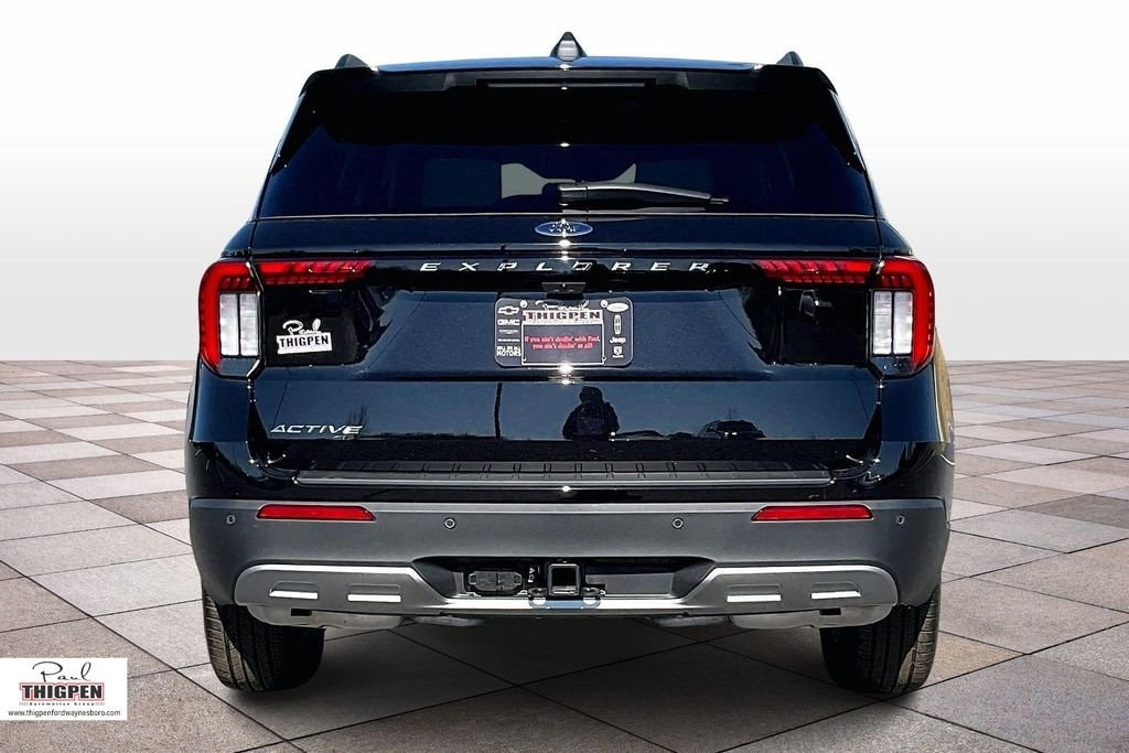 Agate Black Metallic 2026 Ford Explorer Active RWD 10-Speed Automatic 2.3L EcoBoost I-4 3rd row seats: bench, 4-Wheel Disc Brakes, 6 Speakers, ABS brakes, Air Conditioning, Alloy wheels, AM/FM radio: SiriusXM with 360L, AM/FM Stereo, Apple CarPlay/Android Auto, Auto High-beam Headlights, Automatic temperature control, Brake assist, Bumpers: body-color, Compass, Delay-off headlights, Driver door bin, Driver vanity mirror, Dual front impact airbags, Dual front side impact airbags, Electronic Stability Control, Emergency communication system: 911 Assist, Exterior Parking Camera Rear, Four wheel independent suspension, Front and 2nd Rows Floor Liners with Carper Floor Mats, Front anti-roll bar, Front Bucket Seats, Front Center Armrest, Front dual zone A/C, Front License Plate Bracket, Front reading lights, Fully automatic headlights, Heated door mirrors, Illuminated entry, Knee airbag, Low tire pressure warning, Navigation System, Occupant sensing airbag, Outside temperature display, Overhead airbag, Overhead console, Panic alarm, Passenger door bin, Passenger vanity mirror, Power door mirrors, Power driver seat, Power steering, Power windows, Rear air conditioning, Rear anti-roll bar, Rear reading lights, Rear window defroster, Rear window wiper, Remote keyless entry, Security system, Speed control, Speed-sensing steering, Speed-Sensitive Wipers, Split folding rear seat, Spoiler, Steering wheel mounted audio controls, Tachometer, Telescoping steering wheel, Tilt steering wheel, Traction control, Trip computer, Variably intermittent wipers, Wheels: 18" Sparkle Silver-Painted Aluminum.