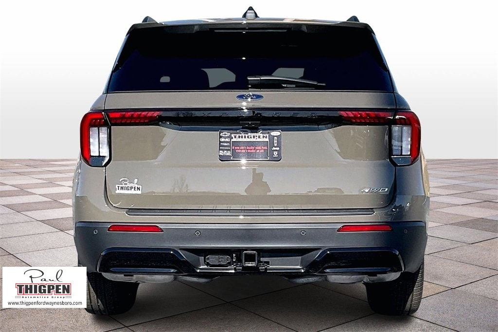 Marsh Gray 2026 Ford Explorer ST-Line 4WD 10-Speed Automatic 2.3L EcoBoost I-4 4WD, 10 Speakers, 110V/150W AC Power Outlet, 2nd Row Captain's Chairs w/E-Z Entry and Armrest, 2nd Row Heated Seats, 3rd row seats: bench, 4-Wheel Disc Brakes, ABS brakes, Air Conditioning, Alloy wheels, AM/FM radio: SiriusXM with 360L, Ambient Lighting, Apple CarPlay/Android Auto, Auto High-beam Headlights, Auto-Dimming Interior Rear-View Mirror, Automatic temperature control, BlueCruise (equipment + 1-Year + 90-Day Plan), BlueCruise Hardware, Brake assist, Bumpers: body-color, Compass, Delay-off headlights, Driver door bin, Driver vanity mirror, Dual front impact airbags, Dual front side impact airbags, Electronic Stability Control, Emergency communication system: 911 Assist, Equipment Group 300A Standard Package, Exterior Parking Camera Rear, Four wheel independent suspension, Front anti-roll bar, Front Bucket Seats, Front Center Armrest, Front dual zone A/C, Front fog lights, Front License Plate Bracket, Front reading lights, Fully automatic headlights, Garage door transmitter, Heated door mirrors, Heated front seats, Heated steering wheel, Heated Unique Cloth Captain's Chairs, Illuminated entry, Knee airbag, Leather steering wheel, Low tire pressure warning, Manual-Folding Sideview Mirrors, Memory Driver's Seat, Navigation System, Occupant sensing airbag, Outside temperature display, Overhead airbag, Overhead console, Panic alarm, Panoramic Fixed Glass Roof with Power Shade, Passenger door bin, Passenger vanity mirror, Performance Brakes, Power door mirrors, Power driver seat, Power Liftgate, Power passenger seat, Power steering, Power windows, Premium Package, Radio: B&O Sound System by Bang and Olufsen, Rain-Sensing Wipers (front Only), Rear air conditioning, Rear anti-roll bar, Rear reading lights, Rear window defroster, Rear window wiper, Red Painted Performance Front and Rear Brake Calipers, Remote keyless entry, Security system, Speed control, Speed-sensing steering, Speed-Sensitive Wipers, Split folding rear seat, Spoiler, ST-Line Street Pack, Steering wheel mounted audio controls, Tachometer, Telescoping steering wheel, Tilt steering wheel, Traction control, Trip computer, Variably intermittent wipers, Wheels: 20" Ebony-Painted Machined Aluminum, Wheels: 21" Magnetite-Painted Aluminum, 4WD.
