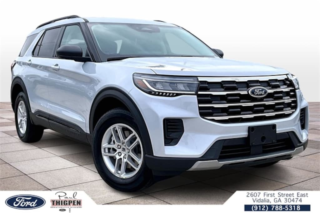 Space White Metallic 2026 Ford Explorer Active 4WD 10-Speed Automatic 2.3L EcoBoost I-4 Vidalia Ford Lincoln 2607 E 1st St Vidalia, Georgia 30474 912-788-5318 Active Comfort Package (Front Fascia, Heated ActiveX Seating Material Captain's Chairs, Heated Steering Wheel, Remote Start System, and Second Row Hvac Controls), Equipment Group 200A Standard Package (AM/FM Stereo, Unique Cloth Heated Captain's Chairs, and Wheels: 18" Sparkle Silver-Painted Aluminum), Ford Connectivity Package (one-Time Purchase - 7 Years), 4D Sport Utility, 2.3L EcoBoost I-4, 10-Speed Automatic, 4WD, Navigation System, Power Liftgate, 3rd row seats: bench, 4-Wheel Disc Brakes, 6 Speakers, ABS brakes, Air Conditioning, Alloy wheels, AM/FM radio: SiriusXM with 360L, Apple CarPlay/Android Auto, Auto High-beam Headlights, Automatic temperature control, Brake assist, Bumpers: body-color, Compass, Delay-off headlights, Driver door bin, Driver vanity mirror, Dual front impact airbags, Dual front side impact airbags, Electronic Stability Control, Emergency communication system: 911 Assist, Exterior Parking Camera Rear, Four wheel independent suspension, Front anti-roll bar, Front Bucket Seats, Front Center Armrest, Front dual zone A/C, Front reading lights, Fully automatic headlights, Heated door mirrors, Illuminated entry, Knee airbag, Low tire pressure warning, Occupant sensing airbag, Outside temperature display, Overhead airbag, Overhead console, Panic alarm, Passenger door bin, Passenger vanity mirror, Power driver seat, Power steering, Power windows, Rear air conditioning, Rear anti-roll bar, Rear reading lights, Rear window defroster, Rear window wiper, Remote keyless entry, Security system, Speed control, Speed-sensing steering, Speed-Sensitive Wipers, Split folding rear seat, Spoiler, Steering wheel mounted audio controls, Tachometer, Telescoping steering wheel, Tilt steering wheel, Traction control, Trip computer, and Unique Cloth Captain's Chairs. 12.3" HD Color Driver Cluster, 13.2" HD Color Touchscreen, 3rd Row Seating, 5G WiFi Hotspot Telematics, Android Auto, Apple Carplay, Backup Camera, Bluetooth w/ Streaming Audio, LED Fog Lights, Power Mirror Package, Power Package, Push Button Start, Remote Start, Tow Package, Trailer Package, 4D Sport Utility, 2.3L EcoBoost I-4, 10-Speed Automatic, 4WD, Active Comfort Package, AM/FM Stereo, Equipment Group 200A Standard Package, Ford Connectivity Package (one-Time Purchase - 7 Years), Front Fascia, Heated ActiveX Seating Material Captain's Chairs, Heated Steering Wheel, Navigation System, Power Liftgate, Remote Start System, Second Row Hvac Controls, Unique Cloth Heated Captain's Chairs, Wheels: 18" Sparkle Silver-Painted Aluminum. Price includes: $2500 - Retail Customer Cash. Exp. 03/31/2026