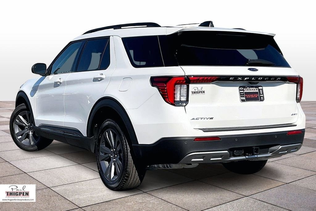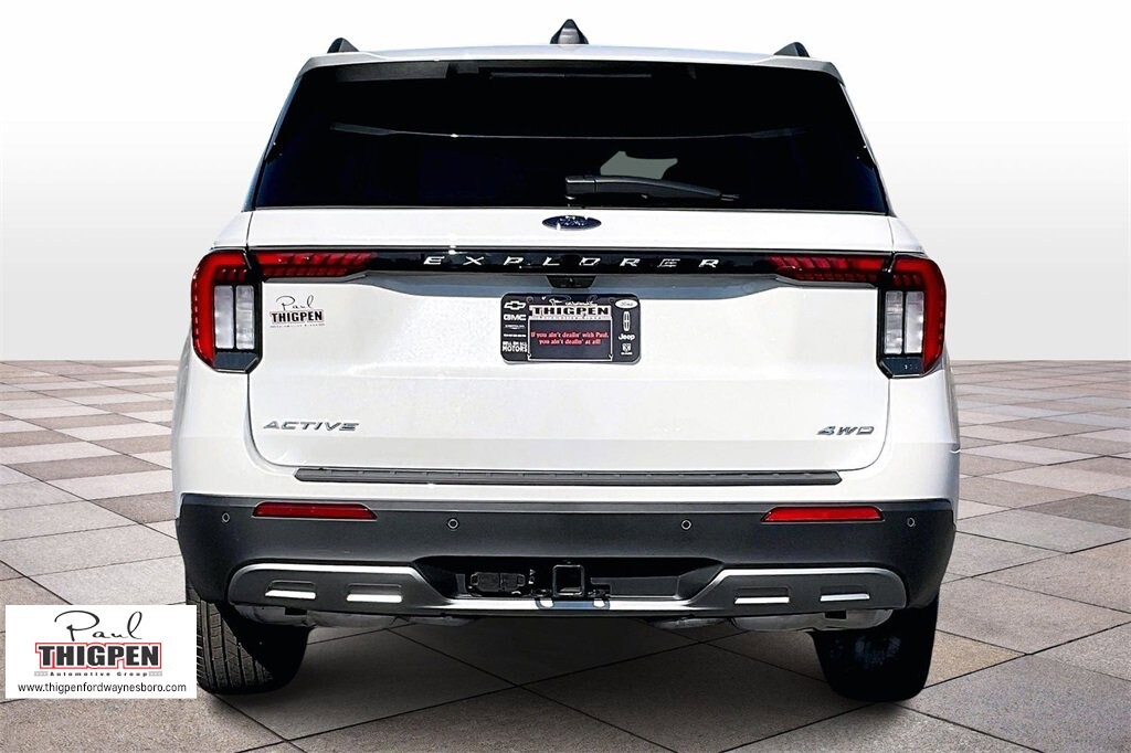 Star White Metallic Tri-Coat 2026 Ford Explorer Active 4WD 10-Speed Automatic 2.3L EcoBoost I-4 4WD, 3rd row seats: bench, 4-Wheel Disc Brakes, 6 Speakers, ABS brakes, Air Conditioning, Alloy wheels, AM/FM radio: SiriusXM with 360L, AM/FM Stereo, Apple CarPlay/Android Auto, Auto High-beam Headlights, Automatic temperature control, Brake assist, Bumpers: body-color, Compass, Delay-off headlights, Driver door bin, Driver vanity mirror, Dual front impact airbags, Dual front side impact airbags, Electronic Stability Control, Emergency communication system: 911 Assist, Exterior Parking Camera Rear, Four wheel independent suspension, Front and Second Rows Floor Liners Without Floor Mats, Front anti-roll bar, Front Bucket Seats, Front Center Armrest, Front dual zone A/C, Front License Plate Bracket, Front reading lights, Fully automatic headlights, Heated door mirrors, Illuminated entry, Knee airbag, Low tire pressure warning, Navigation System, Occupant sensing airbag, Outside temperature display, Overhead airbag, Overhead console, Panic alarm, Passenger door bin, Passenger vanity mirror, Power door mirrors, Power driver seat, Power steering, Power windows, Rear air conditioning, Rear anti-roll bar, Rear reading lights, Rear window defroster, Rear window wiper, Remote keyless entry, Security system, Speed control, Speed-sensing steering, Speed-Sensitive Wipers, Split folding rear seat, Spoiler, Steering wheel mounted audio controls, Tachometer, Telescoping steering wheel, Tilt steering wheel, Traction control, Trip computer, Variably intermittent wipers, Wheels: 18" Sparkle Silver-Painted Aluminum, 4WD.