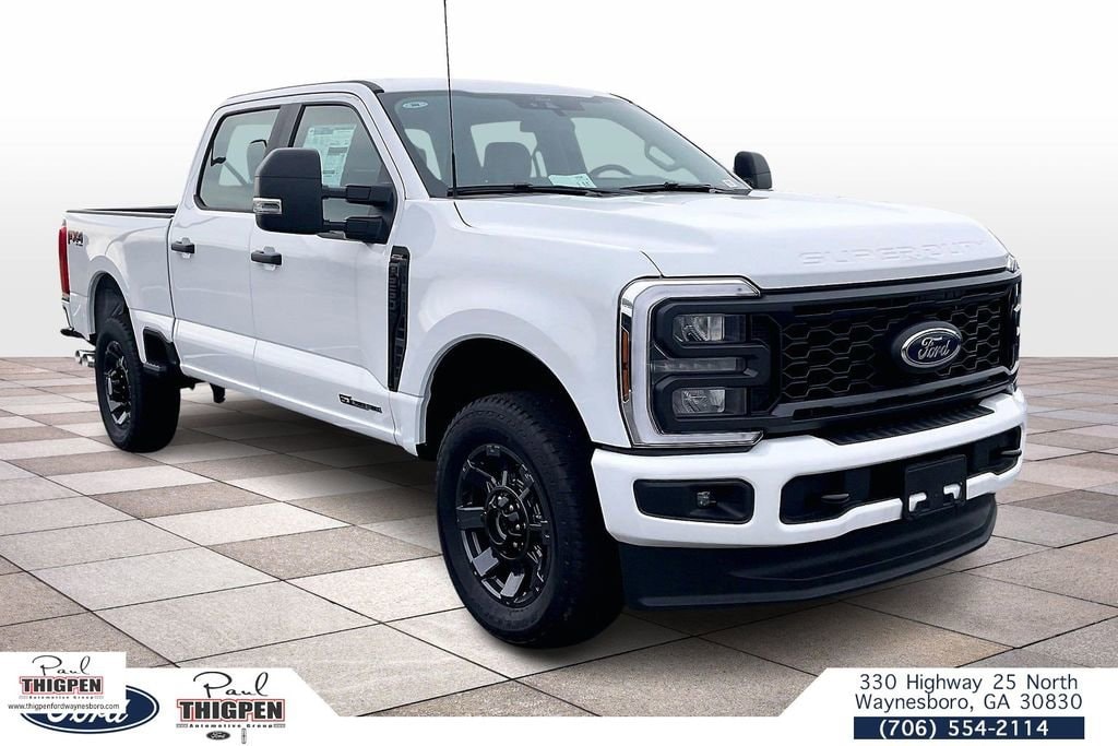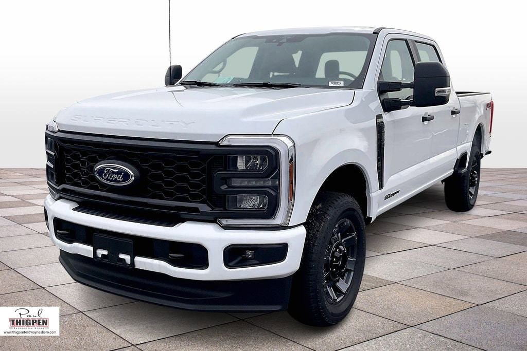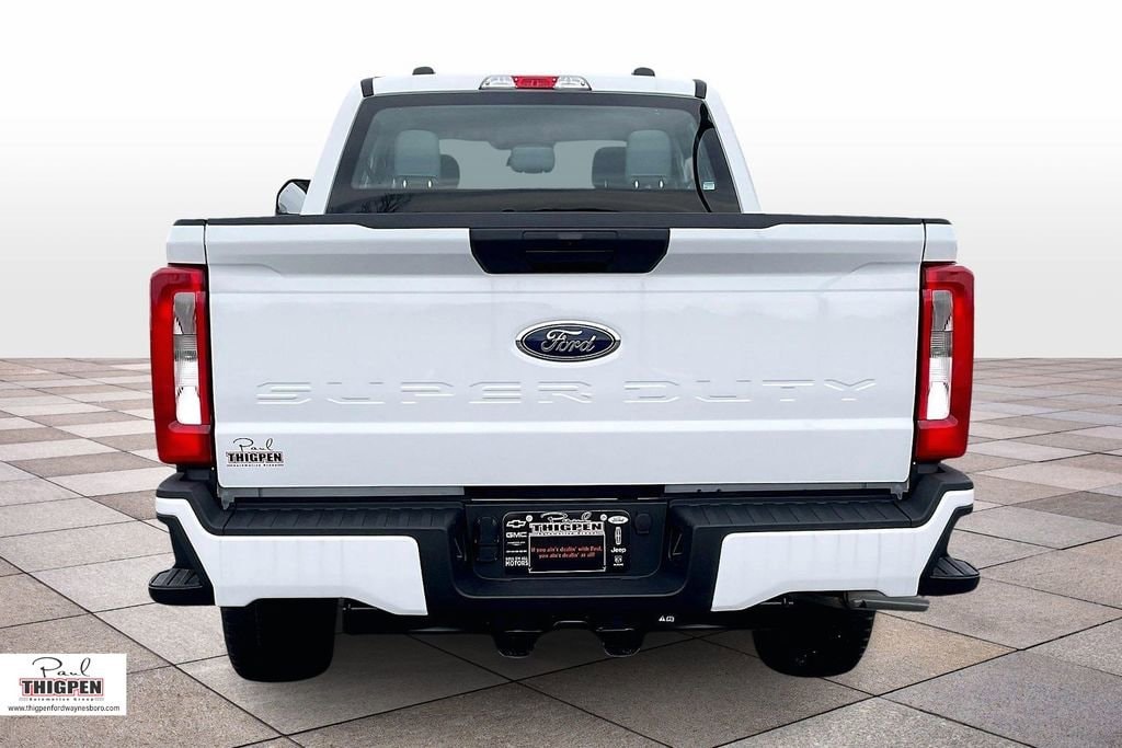 Oxford White 2026 Ford F-250SD XL 4WD 10-Speed Automatic Power Stroke 6.7L V8 DI 32V OHV Turbodiesel 4WD, 17" Argent Painted Steel Wheels, 4-Wheel Disc Brakes, 6 Speakers, ABS brakes, Air Conditioning, AM/FM radio, Body-Color Front Bumper, Body-Color Rear Bumper, Brake assist, Cloth 40/20/40 Split Bench Seat, Color-Coordinated Full Carpet with Floor Mats, Compass, Delay-off headlights, Dual AGM 68 AH Battery, Dual front impact airbags, Dual front side impact airbags, Electronic Stability Control, Emergency communication system: SYNC 4 911 Assist, Exterior Parking Camera Rear, Ford Connectivity Package (1-Year Included), Front anti-roll bar, Front Center Armrest w/Storage, Front License Plate Bracket, Front reading lights, Fully automatic headlights, FX4 Off-Road Package, GVWR: 10,000 Lb Payload Package, HD Vinyl 40/20/40 Split Bench Seat, Heated door mirrors, Hill Descent Control, Illuminated entry, Internet access capable: 5G Modem - Ford Connectivity Package, Low tire pressure warning, Off-Road Specifically Tuned Shock Absorbers, Order Code 600A, Outside temperature display, Overhead airbag, Overhead console, Painted Grille, Panic alarm, Passenger vanity mirror, Power door mirrors, Power steering, Power windows, Pro Power Onboard - 400W, Radio: AM/FM Stereo with MP3 Player, Rear reading lights, Rear step bumper, Remote keyless entry, Security system, Speed control, Split folding rear seat, Steering wheel mounted audio controls, STX Appearance Package, SYNC 4, Tachometer, Telescoping steering wheel, Tilt steering wheel, Traction control, Trailer Brake Controller, Trip computer, Turn signal indicator mirrors, Unique FX4 Off-Road Box Decal, Variably intermittent wipers, Wheels: 20" Dark Carbonized Gray Painted Aluminum, XL Driver Assist Package, 4WD.