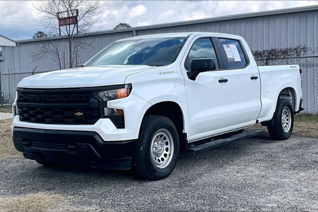 Vidalia Ford Lincoln 2607 E 1st St Vidalia, Georgia 30474 912-788-5318 Preferred Equipment Group 1WT (3.5" Monochromatic Display Driver Info Center, Black (Semi-Gloss) Front Bumper, Black (Semi-Gloss) Rear Bumper, Black Manual Outside Mirrors, Bluetooth® For Phone, Electrical Steering Column Lock, Front Frame-Mounted Black Recovery Hooks, HD Rear Vision Camera, Inside Rear-View Mirror w/Tilt, Locking Tailgate, Manual Tailgate Function w/No EZ Lift, Manual Tilt Wheel Steering Column, Power Front Windows w/Driver Express Up/Down, Power Front Windows w/Passenger Express Down, Power Rear Windows w/Express Down, Rear 60/40 Folding Bench Seat (Folds Up), Remote Keyless Entry, Rubberized-Vinyl Floor Covering, Solar Absorbing Tinted Glass, and Standard Tailgate), Trailering Package (Hitch Guidance), WT Convenience Package (Deep-Tinted Glass, Electric Rear-Window Defogger, Electronic Cruise Control, and Heated Power-Adjustable Outside Mirrors), WT Value Package, Standard Suspension Package, Ford Blue Advantage: Blue Certified Certified, 4D Crew Cab, 2.7L Turbo, 8-Speed Automatic, 4WD, 4-Wheel Disc Brakes, 40/20/40 Front Split-Bench Seat, 6-Speaker Audio System, ABS brakes, Apple CarPlay/Android Auto, Auto High-beam Headlights, Auto-Locking Rear Differential, Automatic Emergency Braking, Brake assist, Delay-off headlights, Electronic Stability Control, Following Distance Indicator, Forward Collision Alert, Front Center Armrest w/Storage, Front Pedestrian Braking, Fully automatic headlights, Illuminated entry, Lane Keep Assist w/Lane Departure Warning, Low tire pressure warning, Outside temperature display, Overhead console, Panic alarm, Power steering, Power windows, Premium audio system: Chevrolet Infotainment 3, Radio data system, Radio: Chevrolet Infotainment 3 System, Remote keyless entry, Speed-sensing steering, Split folding rear seat, Tilt steering wheel, Traction control, Trip computer, Variably intermittent wipers, Vinyl Seat Trim, Wheels: 17" x 8" Ultra Silver Painted Steel, 220 Amp Alternator, 3.42 Rear Axle Ratio, 6 Speakers, Air Conditioning, AM/FM radio, Driver door bin, Dual front impact airbags, Dual front side impact airbags, Front anti-roll bar, Front reading lights, Front wheel independent suspension, IntelliBeam Automatic High Beam On/Off, Not Equipped w/Steering Column Lock, Occupant sensing airbag, Overhead airbag, Passenger door bin, Passenger vanity mirror, Rear reading lights, Rear step bumper, Tachometer, and Voltmeter. Summit White 2022 Chevrolet Silverado 1500 WT 4WD 4WD 2.7L Turbo **LOCAL TRADE**, 7" Color Touchscreen, Android Auto, Apple Carplay, Auto Emergency Braking, Backup Camera, Bluetooth w/ Streaming Audio, Following Distance Indicator, Forward Collision Alert, Forward Pedestrian Braking, Hill Start Assist, Lane Change Alert, Lane Departure System, Preferred Equipment Package, Push Button Start, Tow Package, Trailer Package, 4D Crew Cab, 2.7L Turbo, 8-Speed Automatic, 4WD, 3.5" Monochromatic Display Driver Info Center, 4-Wheel Disc Brakes, 40/20/40 Front Split-Bench Seat, 6-Speaker Audio System, ABS brakes, Apple CarPlay/Android Auto, Auto High-beam Headlights, Auto-Locking Rear Differential, Automatic Emergency Braking, Black (Semi-Gloss) Front Bumper, Black (Semi-Gloss) Rear Bumper, Black Manual Outside Mirrors, Bluetooth® For Phone, Brake assist, Deep-Tinted Glass, Delay-off headlights, Electric Rear-Window Defogger, Electrical Steering Column Lock, Electronic Cruise Control, Electronic Stability Control, Following Distance Indicator, Forward Collision Alert, Front Center Armrest w/Storage, Front Frame-Mounted Black Recovery Hooks, Front Pedestrian Braking, Fully automatic headlights, HD Rear Vision Camera, Heated Power-Adjustable Outside Mirrors, Hitch Guidance, Illuminated entry, Inside Rear-View Mirror w/Tilt, Lane Keep Assist w/Lane Departure Warning, Locking Tailgate, Low tire pressure warning, Manual Tailgate Function w/No EZ Lift, Manual Tilt Wheel Steering Column, Outside temperature dis