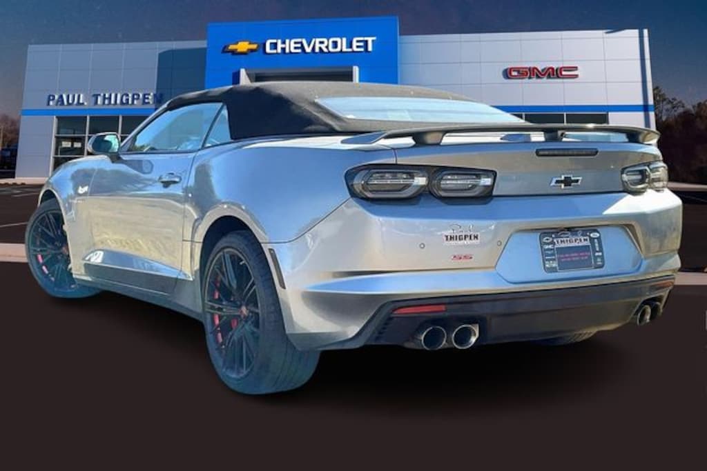 Vidalia Ford Lincoln 2607 E 1st St Vidalia, Georgia 30474 912-788-5318 Preferred Equipment Group 2SS, Ford Blue Advantage: Blue Certified Certified, 4-Wheel Disc Brakes, 6-Way Power Front Passenger Seat Adjuster, 7 Speakers, 8-Way Power Driver Seat Adjuster, ABS brakes, Air Conditioning, Alloy wheels, AM/FM radio: SiriusXM with 360L, Apple CarPlay/Android Auto, Auto-dimming door mirrors, Automatic temperature control, Black 6.2L Strut Tower Brace (LPO), Black SS Wheel Center Caps (LPO), Bluetooth® For Phone, Bose Premium 7-Speaker Audio System Feature, Brake assist, Bumpers: body-color, Camaro Logo Fender Badge (LPO), Compass, Convertible roof lining, Delay-off headlights, Driver door bin, Driver vanity mirror, Dual front impact airbags, Dual front side impact airbags, Dual Mode Exhaust, Electronic Stability Control, Exterior Parking Camera Rear, Four wheel independent suspension, Front anti-roll bar, Front Bucket Seats, Front Center Armrest, Front dual zone A/C, Front reading lights, Front Sport Bucket Seats, Fully automatic headlights, Glass rear window, Heads-Up Display, Heated door mirrors, Heated Driver & Front Passenger Seats, Heated front seats, Heated steering wheel, Illuminated entry, Knee airbag, Leather Shift Knob, Leather-Trimmed Seat Trim, Low tire pressure warning, Memory seat, Occupant sensing airbag, Outside temperature display, Panic alarm, Passenger door bin, Passenger vanity mirror, Power convertible roof, Power door mirrors, Power driver seat, Power passenger seat, Power steering, Power windows, Premium audio system: Chevrolet Infotainment System, Radio data system, Radio: Chevrolet Infotainment 3 Plus System, Rear anti-roll bar, Rear window defroster, Red-Painted Calipers, Remote keyless entry, Security system, SiriusXM w/360L, Speed control, Speed-sensing steering, Spoiler, Steering wheel mounted audio controls, Tachometer, Telescoping steering wheel, Tilt steering wheel, Traction control, Trip computer, Variably intermittent wipers, Ventilated Driver & Front Passenger Seats, Ventilated front seats, Voltmeter, Wheels: 20" x 8.5" Fr & 20" x 9.5" Rr 5-Spoke, Wheels: 20" x 8.5" Fr & 20" x 9.5" Rr 5-Spoke Alum, and Windscreen. Sharkskin Metallic 2024 Chevrolet Camaro SS 2SS RWD 6.2L V8 4-Wheel Disc Brakes, 6-Way Power Front Passenger Seat Adjuster, 7 Speakers, 8-Way Power Driver Seat Adjuster, ABS brakes, Air Conditioning, Alloy wheels, AM/FM radio: SiriusXM with 360L, Apple CarPlay/Android Auto, Auto-dimming door mirrors, Automatic temperature control, Black 6.2L Strut Tower Brace (LPO), Black SS Wheel Center Caps (LPO), Bluetooth® For Phone, Bose Premium 7-Speaker Audio System Feature, Brake assist, Bumpers: body-color, Camaro Logo Fender Badge (LPO), Compass, Convertible roof lining, Delay-off headlights, Driver door bin, Driver vanity mirror, Dual front impact airbags, Dual front side impact airbags, Dual Mode Exhaust, Electronic Stability Control, Exterior Parking Camera Rear, Four wheel independent suspension, Front anti-roll bar, Front Bucket Seats, Front Center Armrest, Front dual zone A/C, Front reading lights, Front Sport Bucket Seats, Fully automatic headlights, Glass rear window, Heads-Up Display, Heated door mirrors, Heated Driver & Front Passenger Seats, Heated front seats, Heated steering wheel, Illuminated entry, Knee airbag, Leather Shift Knob, Leather-Trimmed Seat Trim, Low tire pressure warning, Memory seat, Occupant sensing airbag, Outside temperature display, Panic alarm, Passenger door bin, Passenger vanity mirror, Power convertible roof, Power door mirrors, Power driver seat, Power passenger seat, Power steering, Power windows, Preferred Equipment Group 2SS, Premium audio system: Chevrolet Infotainment System, Radio data system, Radio: Chevrolet Infotainment 3 Plus System, Rear anti-roll bar, Rear window defroster, Red-Painted Calipers, Remote keyless entry, Security system, SiriusXM w/360L, Speed control, Speed-sensing steering, Spoiler, Steering wh