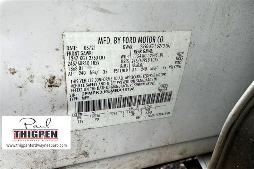 Certified. Oxford White 2021 Ford Edge SEL FWD 8-Speed Automatic EcoBoost 2.0L I4 GTDi DOHC Turbocharged VCT