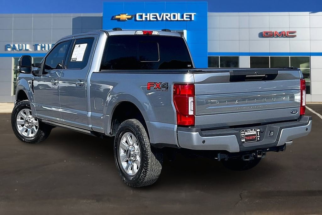 CARFAX One-Owner. F-250SD Platinum, 4D Crew Cab, Power Stroke 6.7L V8 DI 32V OHV Turbodiesel, 10-Speed Automatic, 4WD, Silver Metallic, Black Onyx Vinyl.5th Wheel/Gooseneck Hitch Prep Package, FX4 Off-Road Package (Hill Descent Control, Off-Road Specifically Tuned Shock Absorbers, and Unique FX4 Off-Road Box Decal), GVWR: 10,000 lb Payload Package, F-250SD Platinum, 4D Crew Cab, Power Stroke 6.7L V8 DI 32V OHV Turbodiesel, 10-Speed Automatic, 4WD, Silver Metallic, Black Onyx Vinyl, 10 Speakers, 4-Wheel Disc Brakes, ABS brakes, Adjustable pedals, Air Conditioning, Alloy wheels, AM/FM radio: SiriusXM with 360L, Auto High-beam Headlights, Auto-dimming Rear-View mirror, Automatic temperature control, Brake assist, Compass, Delay-off headlights, Driver door bin, Driver vanity mirror, Dual front impact airbags, Dual front side impact airbags, Electronic Stability Control, Emergency communication system: SYNC 4 911 Assist, Exterior Backup Alarm (Pre-Installed), Exterior Parking Camera Rear, Flow-Through Console, Front anti-roll bar, Front Bucket Seats, Front Center Armrest, Front dual zone A/C, Front fog lights, Front reading lights, Fully automatic headlights, Gooseneck Hitch Kit (Pre-Installed), Heated door mirrors, Illuminated entry, Leather steering wheel, Low tire pressure warning, Navigation system: Connected Navigation, Outside temperature display, Overhead airbag, Overhead console, Panic alarm, Passenger door bin, Passenger vanity mirror, Power door mirrors, Power driver seat, Power passenger seat, Power steering, Power windows, Radio data system, Radio: B&O Sound System by Bang & Olufsen, Rear Parking Sensors, Rear reading lights, Rear seat center armrest, Rear step bumper, Rear window defroster, Remote keyless entry, Retractable Tonneau Pickup Box Cover (Pre-Installed), Security system, SiriusXM Radio w/360L, Speed control, Split folding rear seat, Steering wheel mounted audio controls, SYNC 4 w/Enhanced Voice Recognition, Tachometer, Telescoping steering wheel, Tilt steering wheel, Tough Bed Spray-In Bedliner, Traction control, Trip computer, Turn signal indicator mirrors, Twin Panel Power Moonroof, Upfitter Switches (6), and Variably intermittent wipers.* *Discounted price Includes our Paul Thigpen Chevrolet GMC La Fayette TRADE-IN ASSISTANCE discount of $2,000.00* * * *Discounted price Includes our Paul Thigpen Chevrolet GMC La Fayette FINANCE WITH US -N- SAVE discount of $1,250.00* * - All discounts & promo offers are reflected in in discounted pricing (see qualifying details below) - To qualify for Trade-In Assistance - customers must trade-in a 2010 or newer vehicle. Trade must be in working condition with current registration, taxes, inspections(safety or Gov) and misc. Fees. - To qualify for FINANCE WITH US -N- SAVE discount you must qualify for, and finance at least $10,000.00 of purchase balance through a dealer sourced Credit Union, bank, or financial institution. **Consumer must refer to this ad to receive discounted pricing**Employees and their family members are excluded from special pricing discounts**