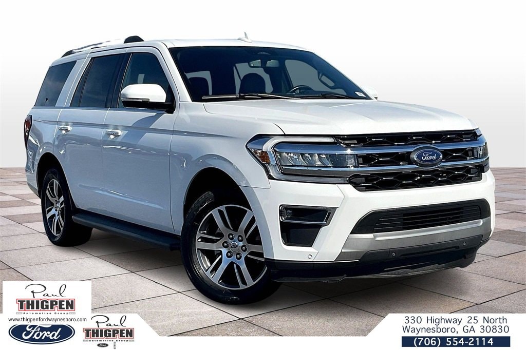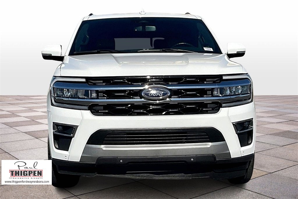Priced below KBB Fair Purchase Price! Certified. Oxford White 2024 Ford Expedition Limited RWD 10-Speed Automatic EcoBoost 3.5L V6 GTDi DOHC 24V Twin Turbocharged Ford Blue Certification Certified, 12 Speakers, 3.31 Axle Ratio, 3rd row seats: split-bench, 4-Wheel Disc Brakes, ABS brakes, Adjustable pedals, Air Conditioning, Alloy wheels, AM/FM radio: SiriusXM with 360L, Auto High-beam Headlights, Auto-dimming door mirrors, Auto-dimming Rear-View mirror, Automatic temperature control, Brake assist, Bumpers: body-color, Compass, Delay-off headlights, Driver door bin, Driver vanity mirror, Dual front impact airbags, Dual front side impact airbags, Electronic Stability Control, Emergency communication system: SYNC 4 911 Assist, Equipment Group 301A Mid Package, Exterior Parking Camera Rear, Four wheel independent suspension, Front anti-roll bar, Front Bucket Seats, Front Center Armrest, Front dual zone A/C, Front fog lights, Front reading lights, Fully automatic headlights, Garage door transmitter, Heated & Ventilated Leather Front Captain's Chairs, Heated door mirrors, Heated front seats, Heated rear seats, Heated steering wheel, Illuminated entry, Leather steering wheel, Low tire pressure warning, Memory seat, Navigation system: Connected Navigation, Occupant sensing airbag, Outside temperature display, Overhead airbag, Overhead console, Panic alarm, Passenger door bin, Passenger vanity mirror, Pedal memory, Power door mirrors, Power driver seat, Power Liftgate, Power moonroof, Power passenger seat, Power steering, Power windows, Radio data system, Radio: B&O Sound System by Bang & Olufsen, Rain sensing wipers, Rear air conditioning, Rear anti-roll bar, Rear reading lights, Rear window defroster, Rear window wiper, Reclining 3rd row seat, Remote keyless entry, Security system, SiriusXM w/360L, Speed control, Speed-sensing steering, Speed-Sensitive Wipers, Split folding rear seat, Spoiler, Steering wheel memory, Steering wheel mounted audio controls, SYNC 4 w/Enhanced Voice Recognition, Tachometer, Telescoping steering wheel, Tilt steering wheel, Traction control, Trip computer, Turn signal indicator mirrors, Variably intermittent wipers, Ventilated front seats, Voltmeter, Wheels: 20" Bright Machined Aluminum.