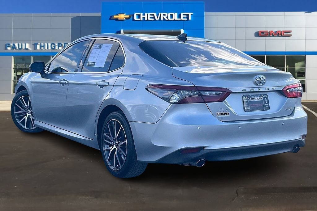 Camry XLE, 4D Sedan, 3.5L V6 DOHC 24V, 8-Speed Automatic, FWD, Gray, Leather, 4-Wheel Disc Brakes, 8.0J x 18 Alloy Wheels, 9 Speakers, ABS brakes, Air Conditioning, Alloy wheels, AM/FM radio: SiriusXM, Apple CarPlay/Android Auto, Auto High-beam Headlights, Auto-dimming Rear-View mirror, Automatic temperature control, Brake assist, Bumpers: body-color, Compass, Delay-off headlights, Driver door bin, Driver vanity mirror, Dual front impact airbags, Dual front side impact airbags, Electronic Stability Control, Emergency communication system: Safety Connect (1-year trial), Exterior Parking Camera Rear, Four wheel independent suspension, Front anti-roll bar, Front Bucket Seats, Front Center Armrest, Front dual zone A/C, Front reading lights, Fully automatic headlights, Garage door transmitter: HomeLink, Heads-Up Display, Heated door mirrors, Heated front seats, Illuminated entry, Knee airbag, Leather steering wheel, Low tire pressure warning, Multi-Stage Heated Front Bucket Seats, Occupant sensing airbag, Outside temperature display, Overhead airbag, Overhead console, Panic alarm, Passenger door bin, Passenger vanity mirror, Perforated Leather Seat Trim, Power door mirrors, Power driver seat, Power moonroof, Power passenger seat, Power steering, Power windows, Radio data system, Radio: Audio Plus w/JBL, Rear anti-roll bar, Rear reading lights, Rear seat center armrest, Rear side impact airbag, Rear window defroster, Remote keyless entry, Security system, Speed control, Speed-sensing steering, Split folding rear seat, Steering wheel mounted audio controls, Tachometer, Telescoping steering wheel, Tilt steering wheel, Traction control, Trip computer, Turn signal indicator mirrors, and Variably intermittent wipers.